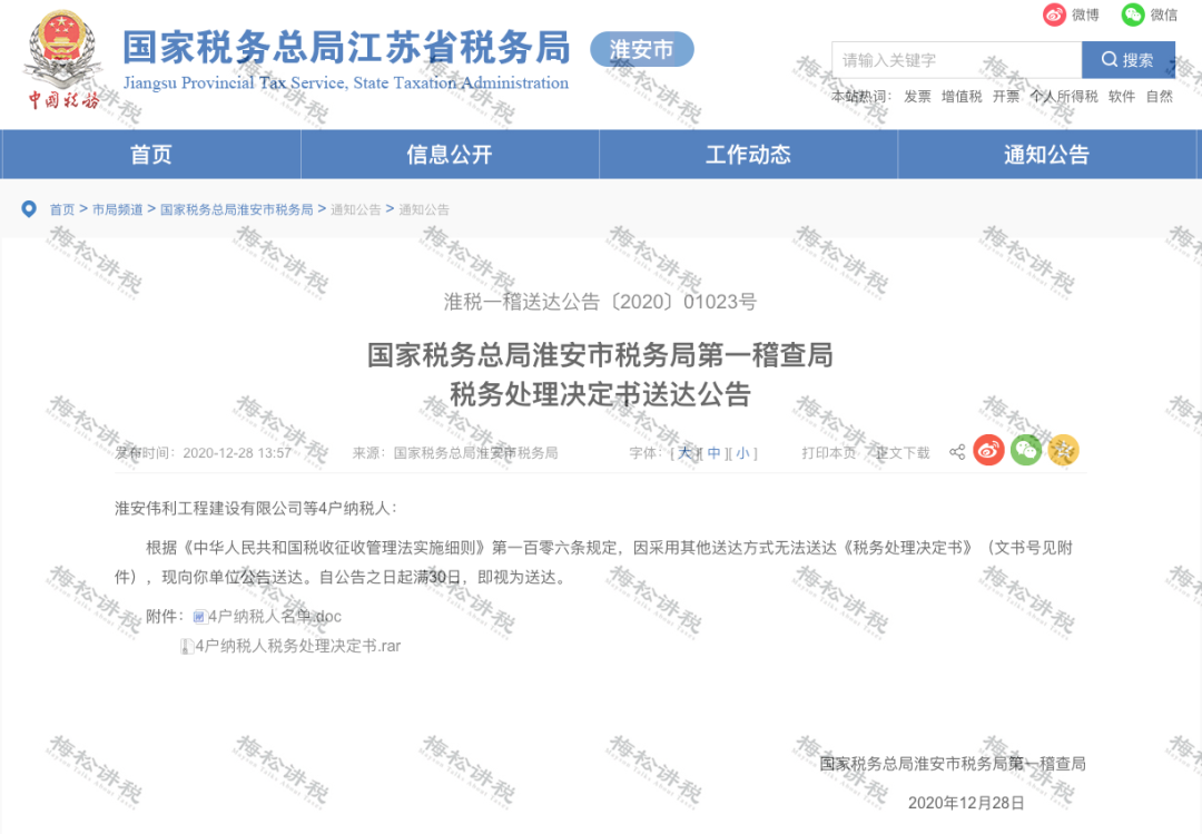 據(jù)淮稅一稽送達(dá)公告〔2020〕01023號(hào)公告顯示,淮安某某工程建設(shè)有限公司、淮安經(jīng)濟(jì)技術(shù)開(kāi)發(fā)區(qū)碩某建材經(jīng)營(yíng)部、淮安經(jīng)濟(jì)技術(shù)開(kāi)發(fā)區(qū)某隆建材經(jīng)營(yíng)部、淮安經(jīng)濟(jì)技術(shù)開(kāi)發(fā)區(qū)保某建材經(jīng)營(yíng)部4戶納稅人因未繳納稅款、個(gè)體戶登記地址虛假、資金往來(lái)不符合經(jīng)營(yíng)常規(guī)等問(wèn)題被稅務(wù)稽查。