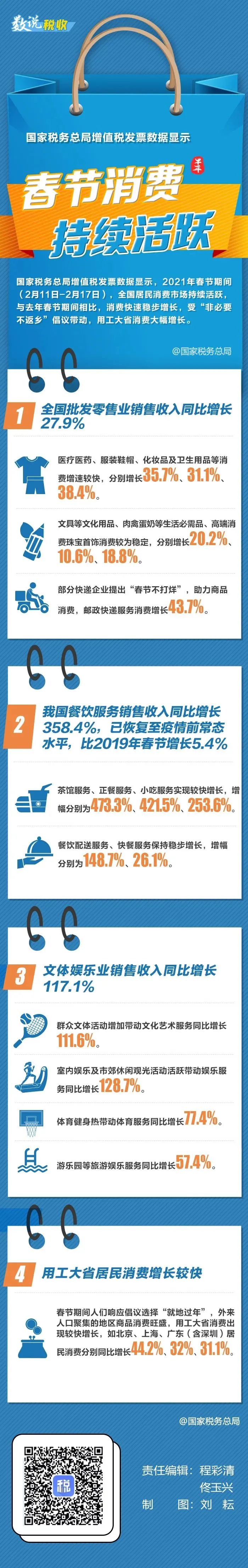 國家稅務(wù)總局增值稅發(fā)票數(shù)據(jù)顯示,2021年春節(jié)期間,全國居民消費市場持續(xù)活躍,與去年春節(jié)期間相比,消費快速穩(wěn)步增長。哪些行業(yè)增長較快?戳圖了解↓