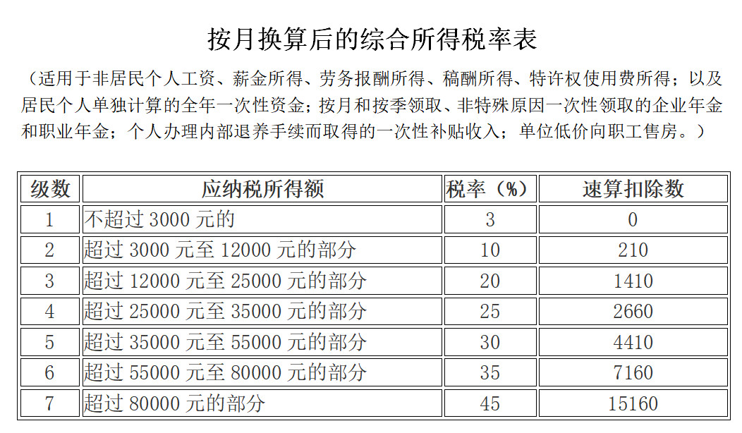 1、個人所得稅最新稅率表
