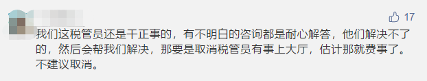 有些小伙伴覺得稅管員都會(huì)耐心幫忙解答問題,不希望取消: