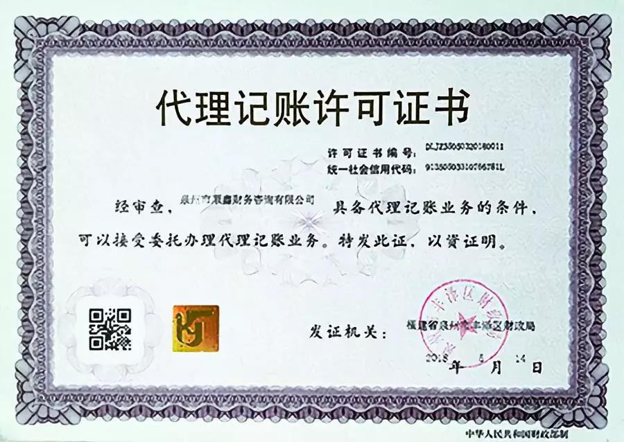 2、有財政部門頒發(fā)的“代理記賬許可證”,這是代理機構(gòu)職業(yè)配置;