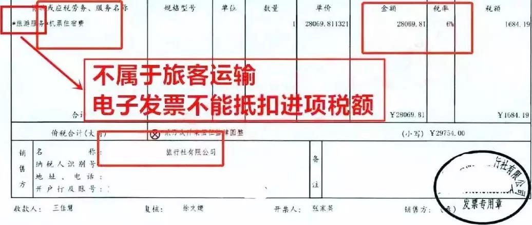 5、旅行社或網(wǎng)上訂的飛機票,取得電子發(fā)票,如果發(fā)票稅收編碼屬于“旅客運輸”同時稅率欄是9%/3%的,可以抵扣發(fā)票上注明的稅額;如果發(fā)票稅收編碼屬于“旅游服務”、“經(jīng)紀代理服務”或稅率欄是6%,不屬于旅客運輸,不屬于合規(guī)的抵扣憑證,不能抵扣進項稅額。