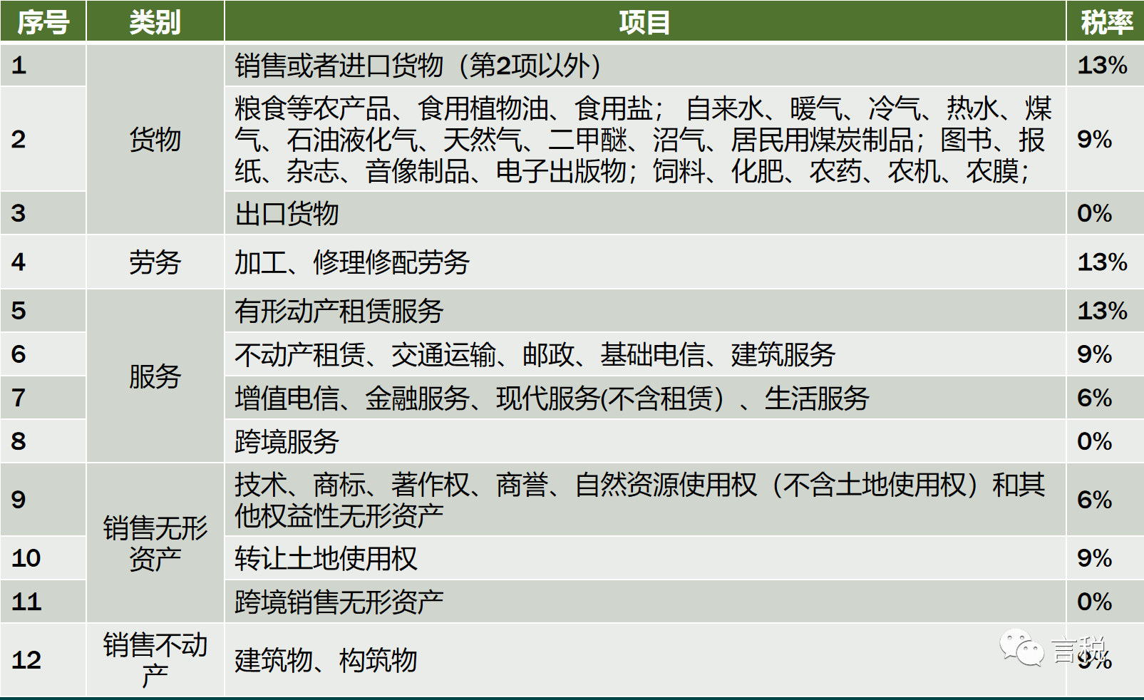 1銷售或者進口貨物(除9-12項外)13%