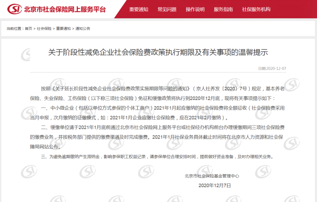 1、中小微企業(yè)注意了,社保免征和緩繳政策執(zhí)行到2020年12月底,2021年1月起應(yīng)繳納的社會(huì)保險(xiǎn)將全額征收!