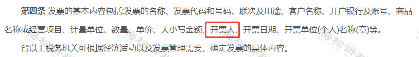 這里僅規(guī)定了“”開票人”是發(fā)票的基本內(nèi)容,“復(fù)核人”屬于可填可不填項(xiàng)目。