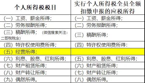 我們一對比,可以發(fā)現(xiàn),只有經營所得不屬于實行個人所得稅全員全額扣除申報的范圍。