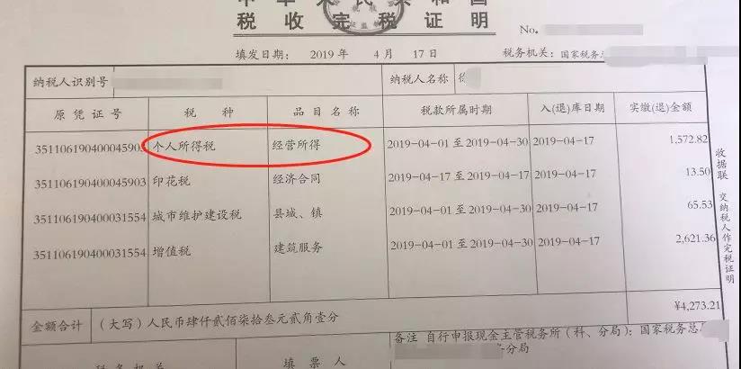 完稅證明顯示,其實按照經營所得核定了個人所得稅。
