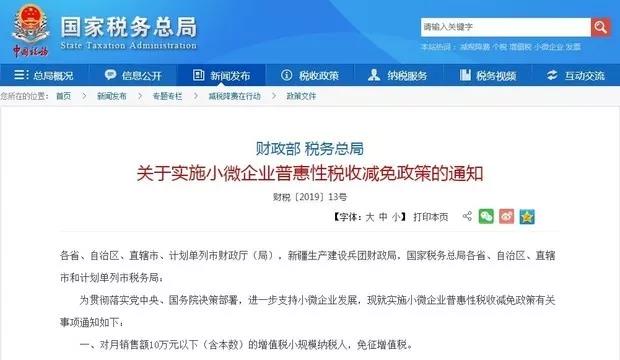 2019年新伊始,國務(wù)院稅收紅利大禮包,小微企業(yè)獲減稅利好,將增值稅小規(guī)模納稅人免稅標(biāo)準(zhǔn)由月銷售額3萬元提高到10萬元。...